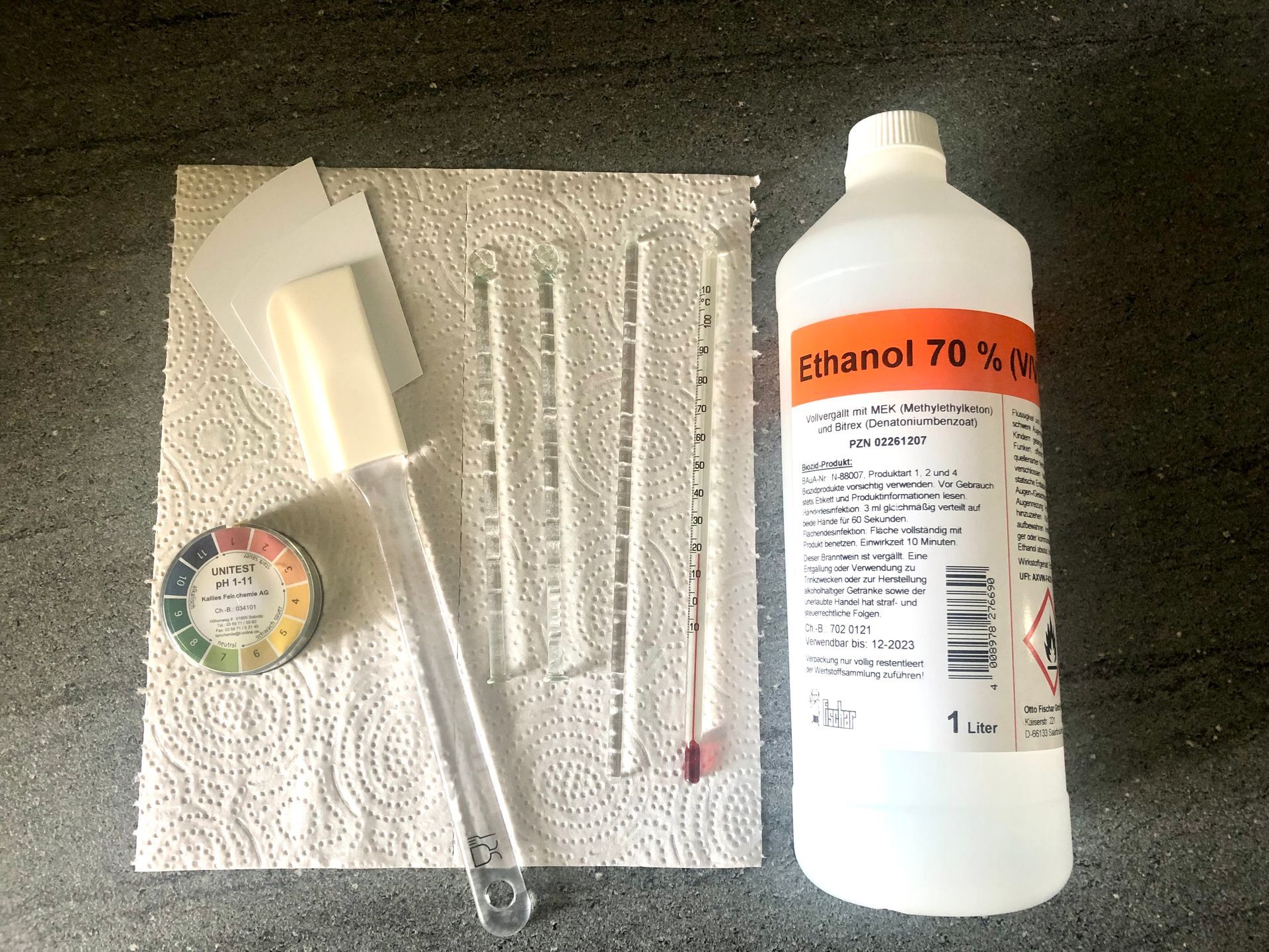 - Indikatorpapier zum Überprüfen des pH-Wertes,